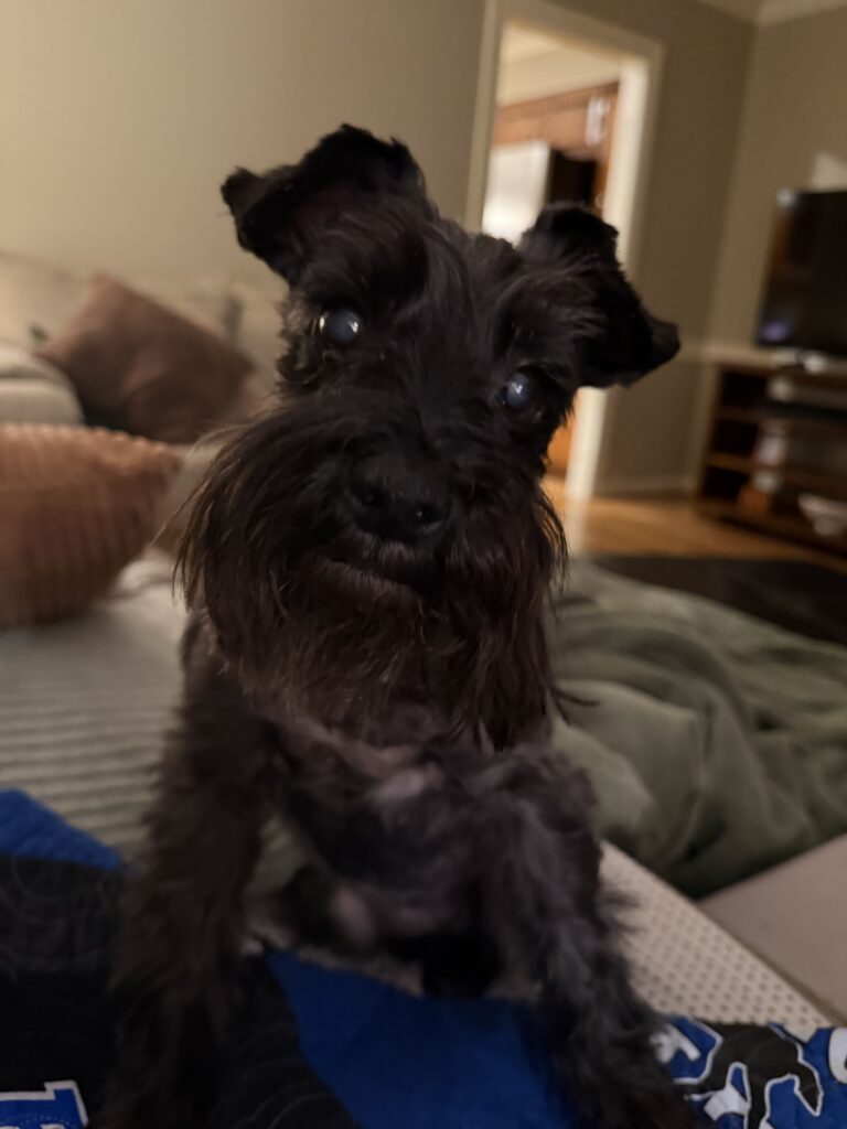 Last but not least, I forgot to ask if pets are allowed at the party. If so, I’ll need to bring along my little writing and reading buddy, Jersey. She’s getting older, and she loves nothing more than to curl up next to me while I slice, or read, or work on the crossword book.