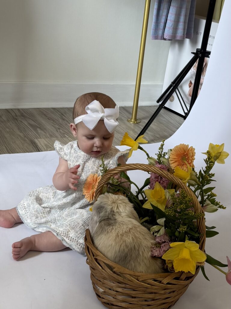 Last weekend, my son was out of town for an annual ski trip with college friends; but my daughter-in-law, her mother, and one of her two sisters inited me to come with them to take my 7-month-old granddaughter for a photo shoot with the Easter Bunny.